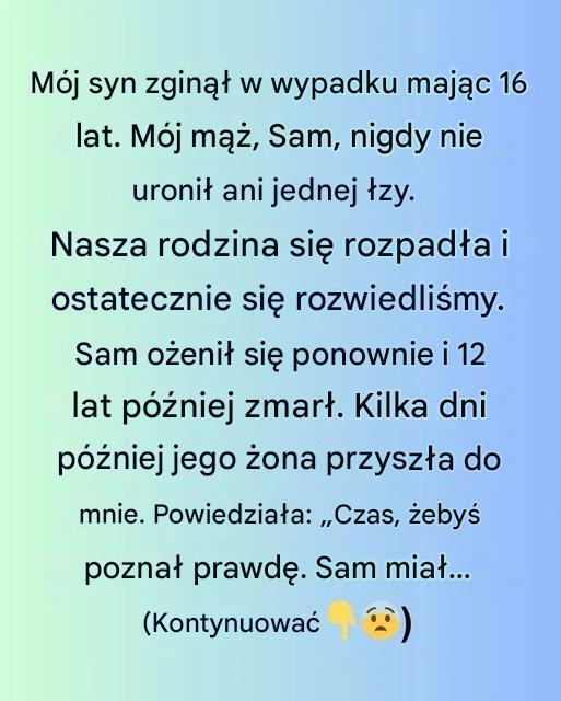 Powiedziała, że ​​nigdy mi nie powiedział, bo nie mógł tego znieść. Że miał do mnie żal… ale ostatecznie strasznie tęsknił za naszym synem.