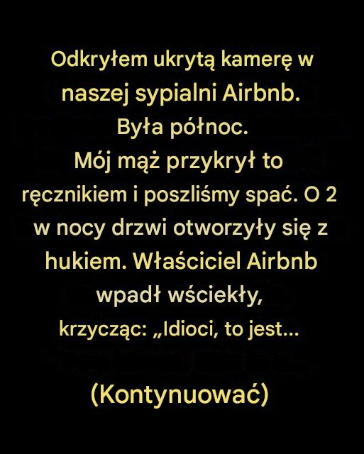 O 2 w nocy drzwi się otworzyły. Właściciel Airbnb wpadł wściekły, krzycząc: „Idioci, to kamera do oglądania z zewnątrz! Czemu ją zakryliście?”