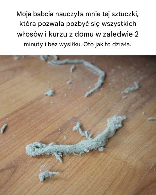 Dobra wiadomość jest taka, że nie musisz poświęcać dużo czasu ani wysiłku, aby utrzymać dom w czystości. Prosty, ale skuteczny trik mojej babci pomoże Ci pozbyć się wszystkich włosów i kurzu w zaledwie kilka minut, praktycznie bez wysiłku.