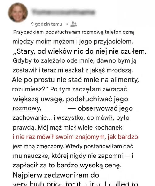 Głos mojego męża, swobodny i okrutny, ujawnił prawdę, której nigdy nie miałam usłyszeć: nie został z miłości, lojalności, ani nawet przyzwyczajenia — został, aby uniknąć alimentów. W tym momencie przestałam być żoną walczącą o małżeństwo i stałam się kobietą przygotowującą się do wojny.